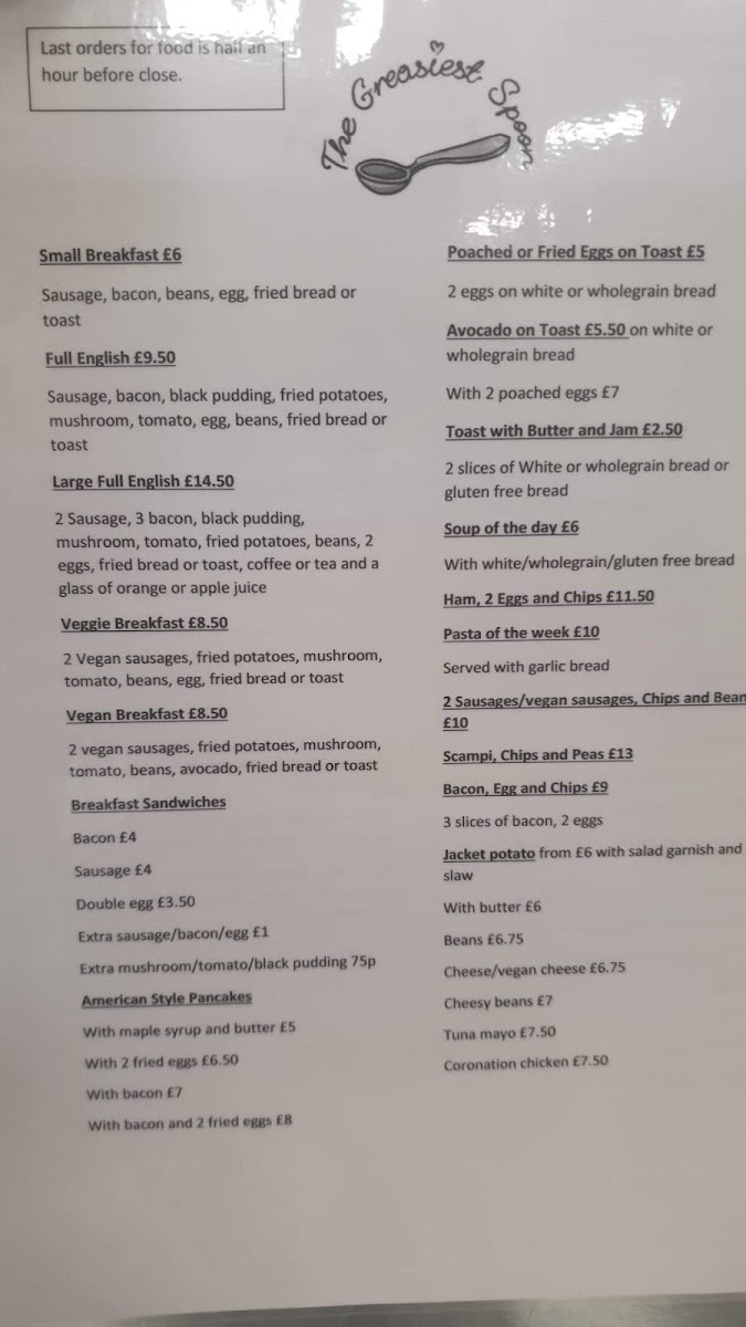 Accompany your meal with a range of drinks, from hearty filter coffee to refreshing orange juice. The café’s cozy atmosphere, friendly service, and commitment to using locally sourced ingredients make every visit a memorable one. Perfect for walkers needing a reward after a day’s hike, The Greasiest Spoon serves up goodness without the grease!